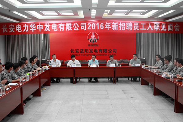 7月20日,公司2016年新員工入職見面會在長安益陽發電有限公司五樓會議室召開,公司執行董事、總經理兼益陽公司董事長李寧,益陽公司總經理邱亦豐、黨委書記黃瑩鰲、華中
