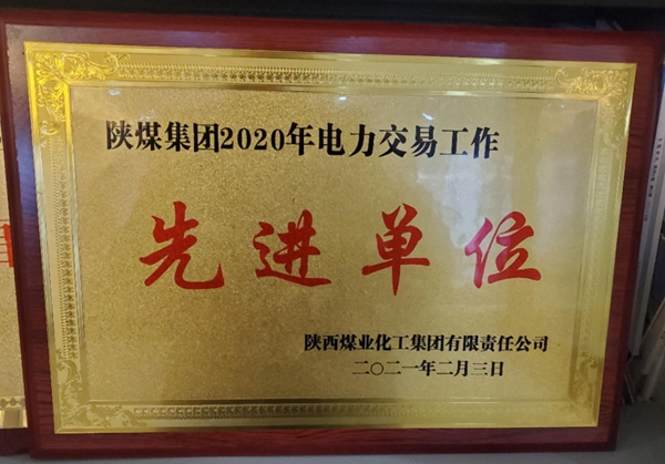 公司喜獲陜煤集團2020年電力交易工作先進單位